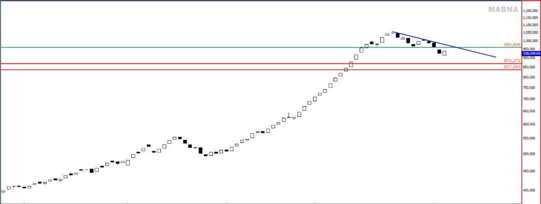 شاخص کل پس از تکمیل الگوی سر و شانه سقف هدف ۸۷۰ هزار را نشانه رفته است و مادامی که خط آبی رنگ رو به بالا قطع نشود الگو معتبر است و روی آن حساب میکنیم .